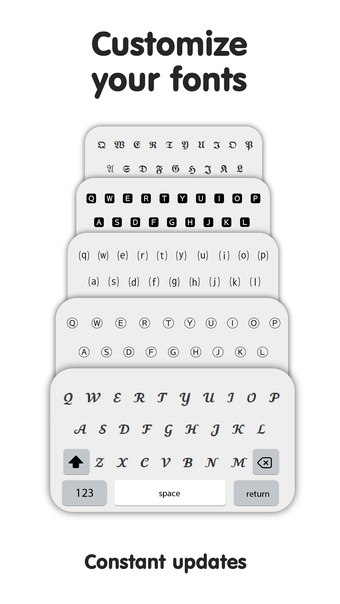 يقدم الخطوط مجموعة متنوعة من الخطوط التي يمكن استخدامها لجعل الرسائل ومنشورات وسائل التواصل الاجتماعي تبرز. يمكن للمستخدمين اختيار من بين مجموعة متنوعة من الخطوط الأنيقة والإبداعية، بالإضافة إلى مجموعة كبيرة من الرموز لتعزيز نصوصهم. يتيح التطبيق تغيير الخط بسرعة وسهولة، مما يجعله مريحًا للمستخدمين للتبديل بين أنماط مختلفة.